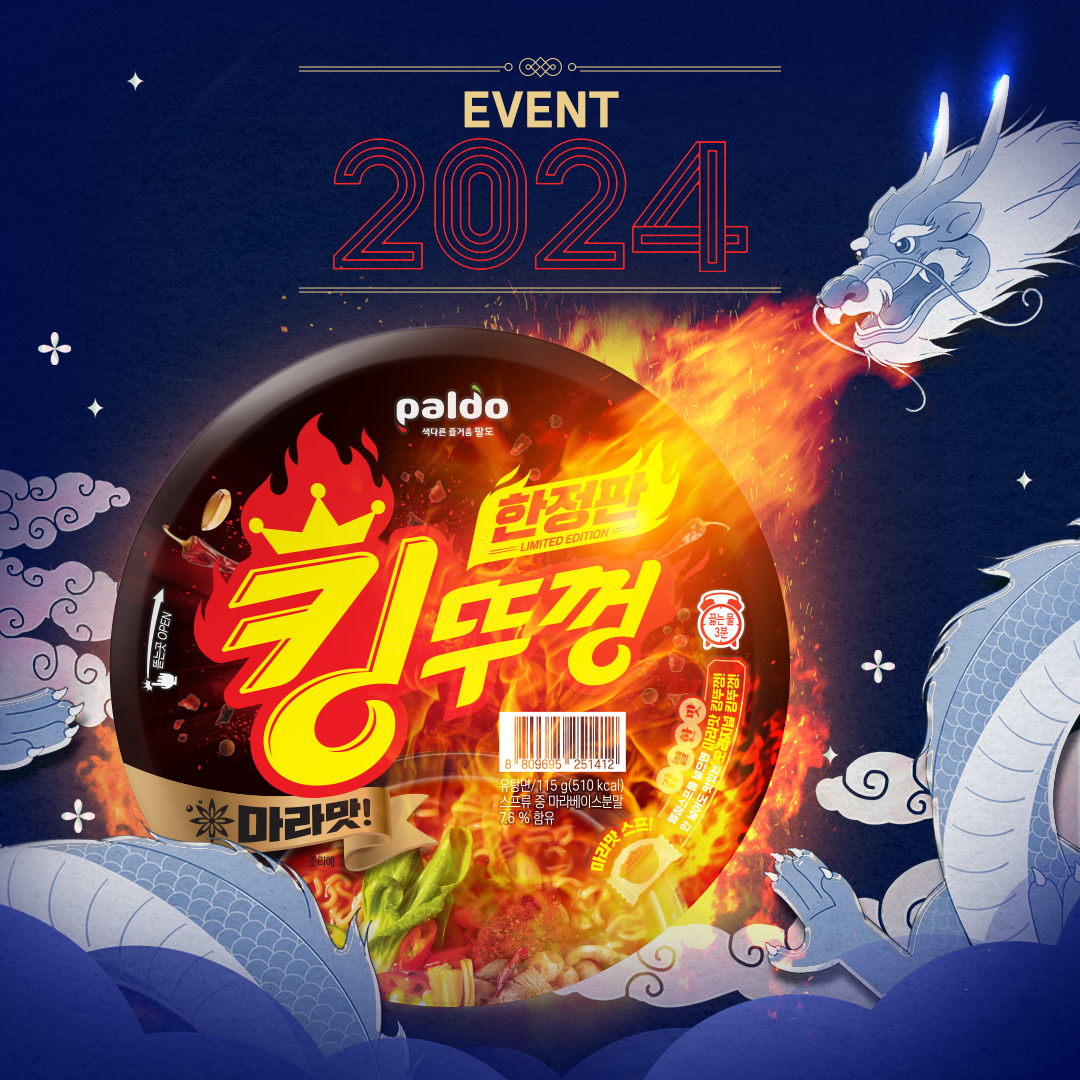 04 9월 팔도 ㅣ 킹뚜껑 마라한정판 새해소망 이벤트 Posted at 11:57h in by works4 | 인스타그램 | 킹뚜껑 마라한정판 새해소망 이벤트매운맛을 불 뿜는 용으로 비유한 이미지 활용 이벤트 콘텐츠 Instagram에서 이 게시물 보기 팔도(@paldofood)님의 공유 게시물