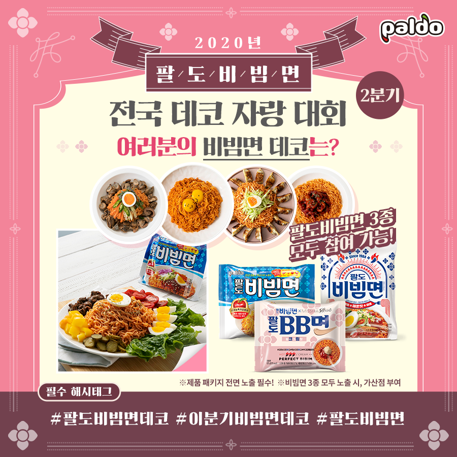 분기별로 총 4번 진행되는 2020년 팔도비빔면 전국 데코 자랑 대회 이벤트 콘텐츠.