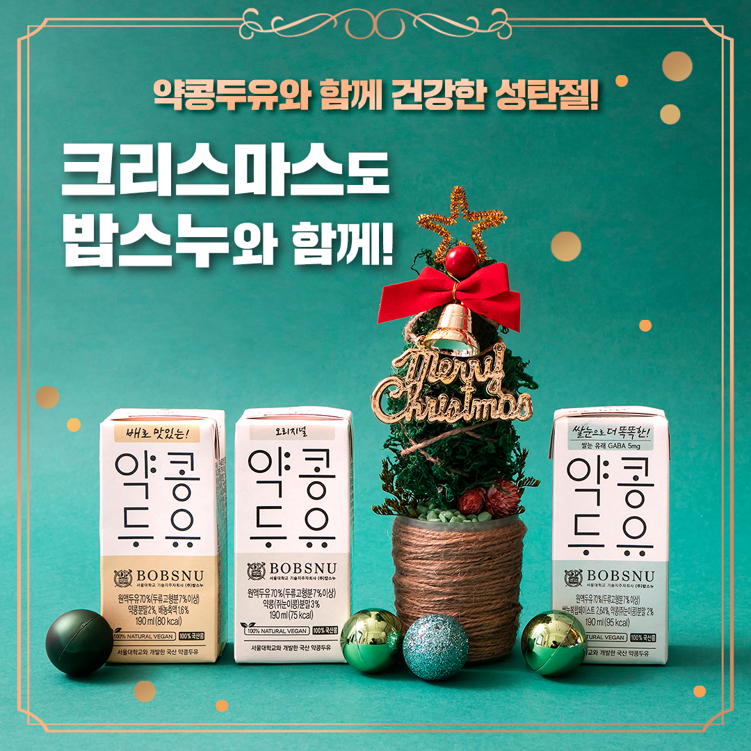 25 1월 12월 약콩두유 : 크리스마스 Posted at 11:00h in by works | 인스타그램 | 크리스마스 기념 밥스누 이벤트건강한 크리스마스를 기원하는 약콩두유 인스타그램 콘텐츠